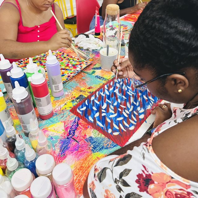 Lors de l’Atelier Lanmou, tu peins librement une toile textile, guidée par ton ressenti du moment.
